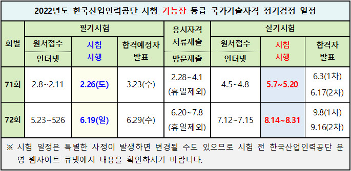 ■ 2022년 한국산업인력공단 시행 기능장 정기검정 일정 (↓)