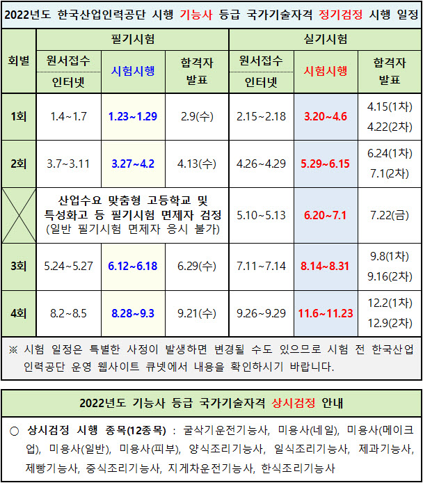■ 2022년 한국산업인력공단 시행 기능사 정기검정 일정 (↓)