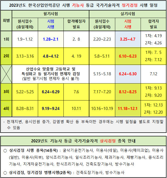 ■ 2023년 한국산업인력공단 시행 기능사 정기검정 일정 (↓)