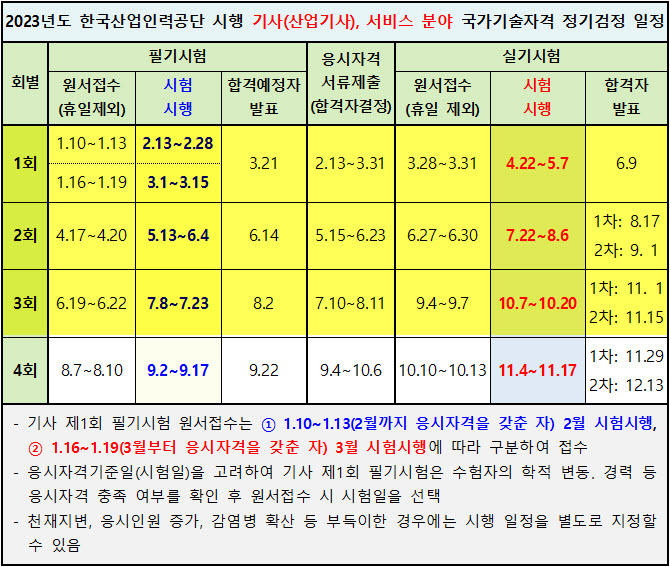 ■ 2023년 기사, 산업기사, 서비스 분야 정기검정 일정 (↓)
