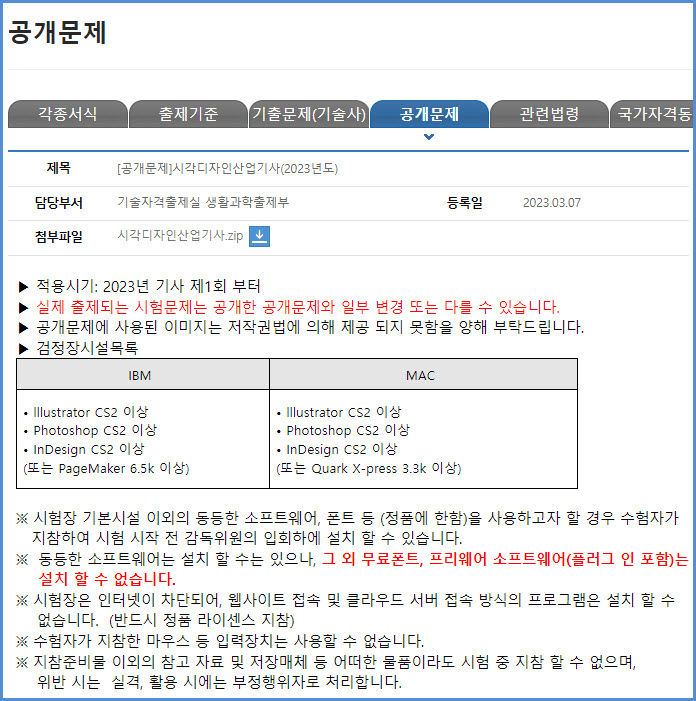 시각디자인산업기사 2023년 실기시험 공개 문제 내려받기 (큐넷 자료실)