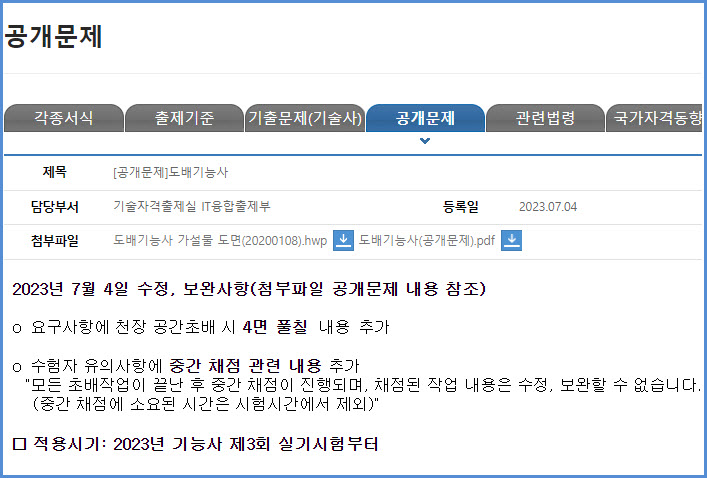 2023년 3회 시험부터 적용되는 도배기능사 실기시험 공개 문제 내려받기 (큐넷 자료실)