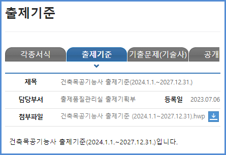 | 건축목재시공기능장 필기시험, 실기시험 출제기준 (2024년~2027년) (0) | 2023.07.16 |