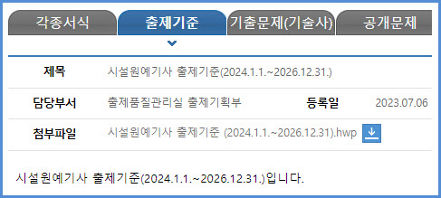 2024년부터 2026년까지 적용되는 시설원예기사 필기시험과 실기시험 출제기준은 한국산업인력공단에서 운영하는 웹사이트 큐넷(q-net.or.kr)의 출제기준 자료실에서 가져온 첨부 파일을 참고하시기를 바랍니다.