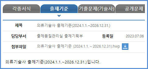 2024년부터 2026년까지 적용되는 의류기술사 필기시험과 실기시험 출제기준은 한국산업인력공단에서 운영하는 웹사이트 큐넷(q-net.or.kr)의 출제기준 자료실에서 가져온 첨부 파일을 참고하시기를 바랍니다.