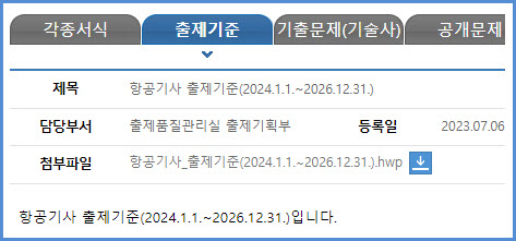 항공기사 필기시험, 실기시험 출제기준 (2024.1.1~2026.12.31)