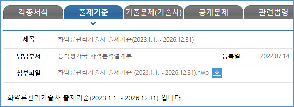 | 화공안전기술사 필기 및 면접시험(과목, 시간, 방법, 합격기준, 출제기준), 필기시험 기출문제 내려받기 (0) | 2023.08.01 |