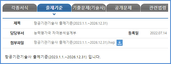 | 항공기체기술사 필기 및 면접시험(과목, 시간, 방법, 합격기준, 출제기준), 필기시험 기출문제 내려받기 (0) | 2023.08.01 |