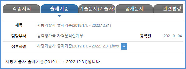 차량기술사 필기 및 면접시험(과목, 시간, 방법, 합격기준, 출제기준), 필기시험 기출문제 내려받기
