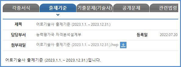 어로기술사 필기 및 면접시험(과목, 시간, 방법, 합격기준, 출제기준), 필기시험 기출문제 내려받기