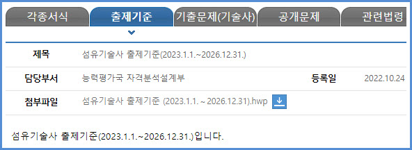 섬유기술사 필기 및 면접시험(과목, 시간, 방법, 합격기준, 출제기준), 필기시험 기출문제 내려받기