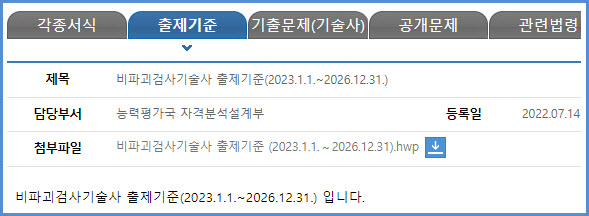 비파괴검사기술사 필기 및 면접시험(과목, 시간, 방법, 합격기준, 출제기준), 필기시험 기출문제 내려받기