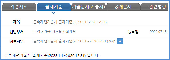 | 금속가공기술사 필기 및 면접시험(과목, 시간, 방법, 합격기준, 출제기준), 필기시험 기출문제 내려받기 (0) | 2023.08.04 |