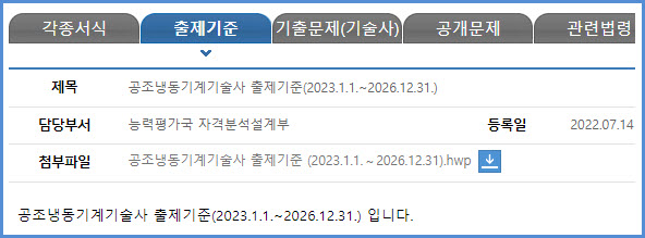 공조냉동기계기술사 필기 및 면접시험(과목, 시간, 방법, 합격기준, 출제기준), 필기시험 기출문제 내려받기