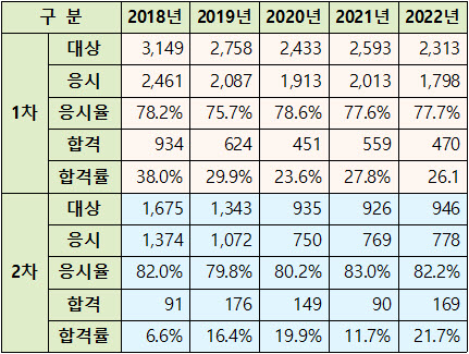■ 2022년 시행 39회 1차 시험 현황