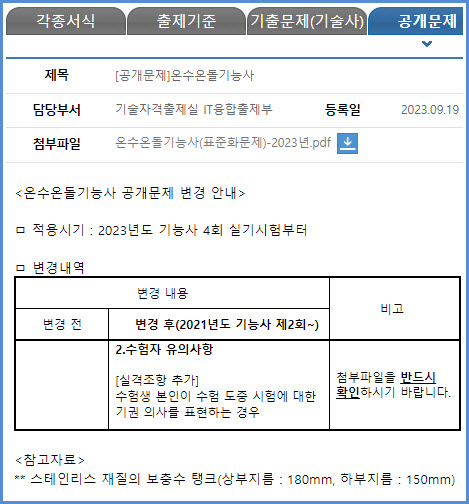 2023년 4회 시험부터 적용되는 온수온돌기능사 실기시험 공개 문제 내려받기 (큐넷 자료실)