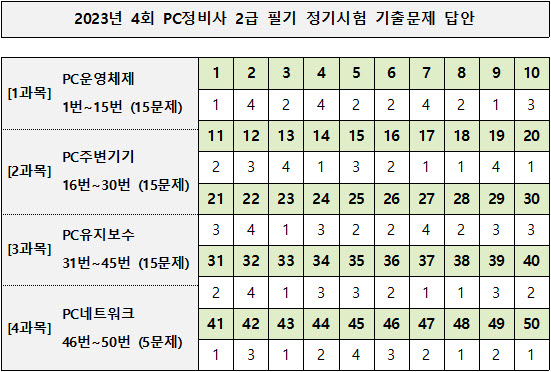 ■ 2023년 4회 PC정비사 2급 필기시험 가답안 (↓)