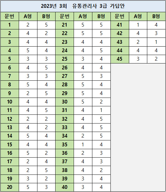 2023년 3회 유통관리사 2급, 3급 기출문제와 가답안 (11월 25일 시행)