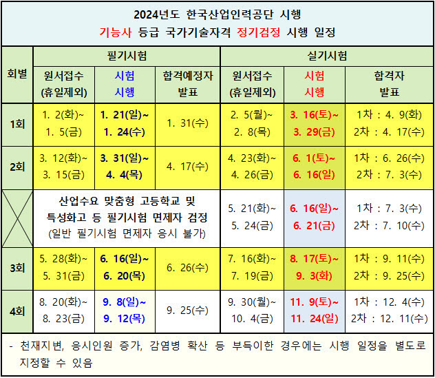 2024년 항공기정비기능사 시험 일정 (한국산업인력공단 시행 정기검정)