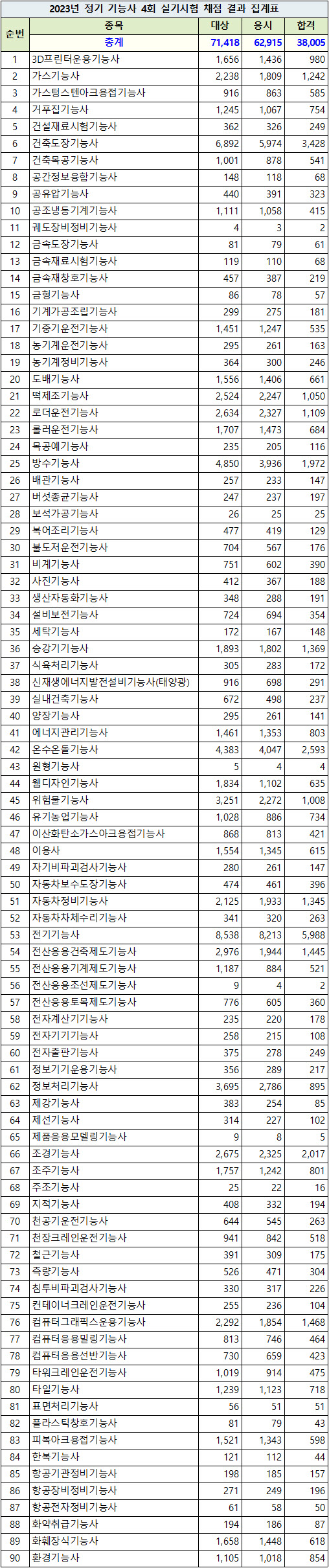 | 한국산업인력공단 2023년 시행 131회 기술사 면접시험 종목별 현황 (응시인원, 합격인원) (0) | 2023.12.21 |