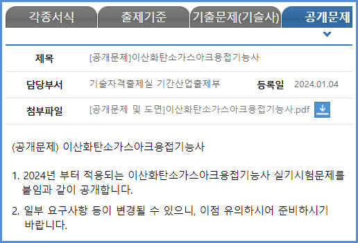 2024년 시험부터 적용되는 이산화탄소가스아크용접기능사 실기시험 공개 문제 내려받기 (큐넷 자료실)