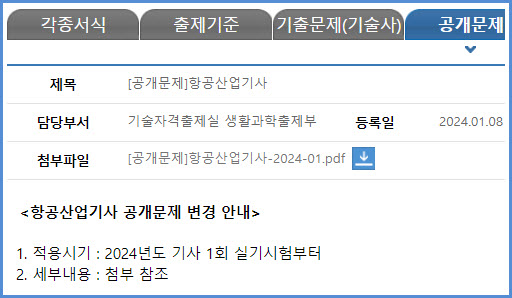 2024년 시험부터 적용되는 항공산업기사 실기시험 공개 문제 내려받기 (큐넷 자료실)
