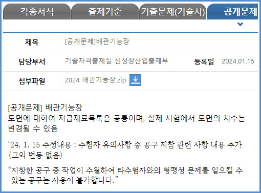 2024년 시험부터 적용되는 배관기능장 실기시험 공개 문제 내려받기 (큐넷 자료실)