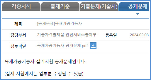 2024년 시험부터 적용되는 목재가공기능사 실기시험 공개 문제 내려받기 (큐넷 자료실)