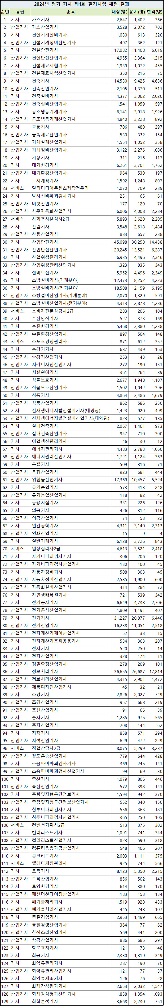 ■ 2024년 1회 필기시험 종목