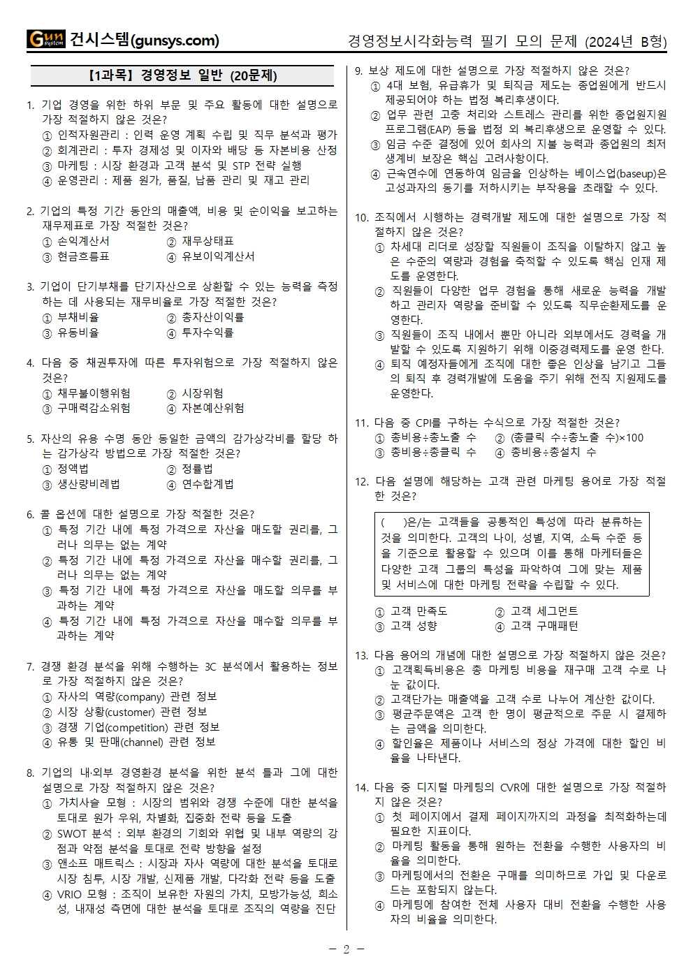■ 2024년 신설 국가기술자격 경영정보시각화능력 필기 모의문제 B형 (↓)