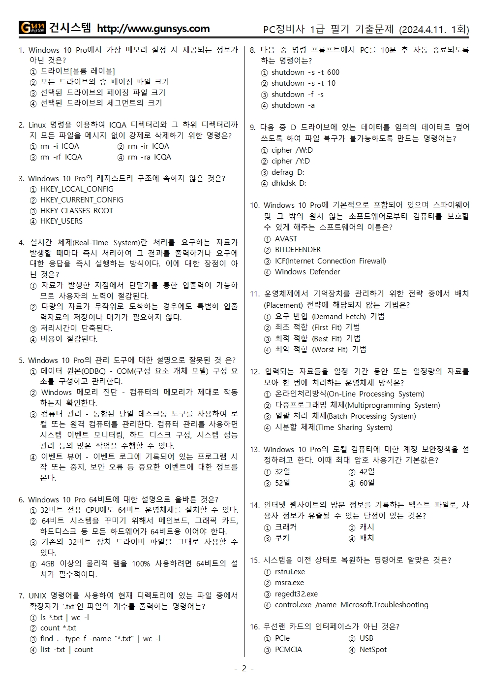 ■ 2024년 1회 PC정비사1급 필기 기출문제 (↓)