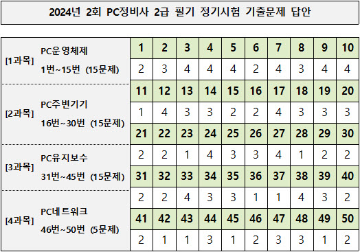 ■ 2024년 2회 PC정비사 2급 필기시험 가답안 (↓)