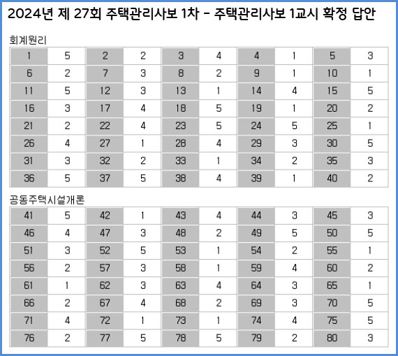 2024년 한국산업인력공단 시행 27회 주택관리사보 1차 시험 확정답안, 기출문제 (6월 29일 시행)