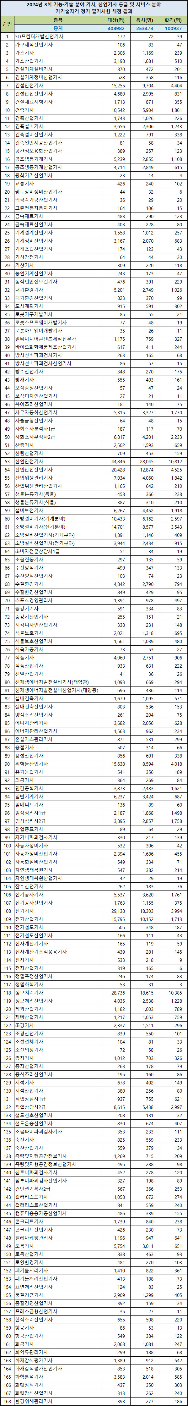 한국산업인력공단 2024년 3회 기사, 산업기사, 서비스 분야 국가기술자격 정기 필기시험 응시 현황