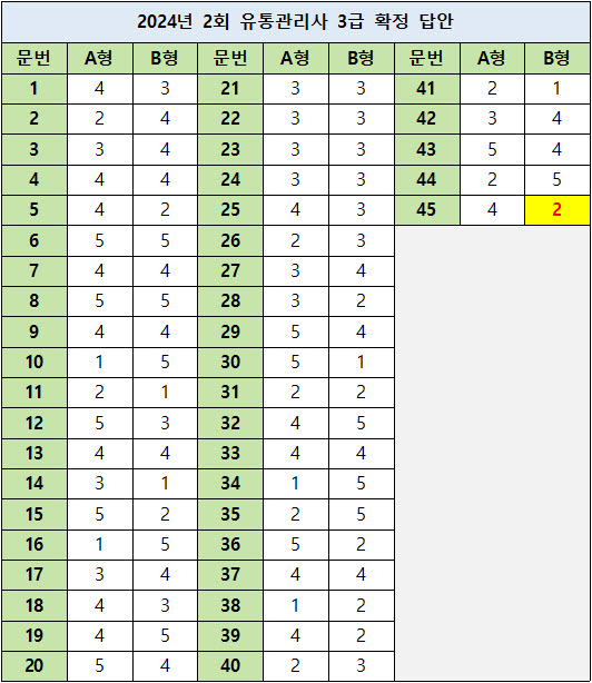 유통관리사 자격검정 시행기관은 대한상공회의소이고, 2024년 2회 시험 확정답안은 시험 당일 발표한 가답안에 대해 의견을 수렴한 후 결정한 최종 답안입니다.
