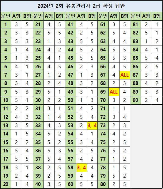 2024년 2회 유통관리사 시험 등급별 기출문제 A형과 B형은 시험장에서 부정행위 등을 방지하기 위해 문제 순서를 다르게 한 것으로 출제 문제는 같습니다.