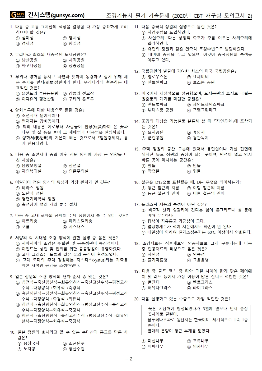 2020년 CBT-2 조경기능사