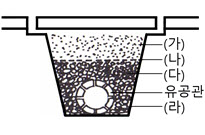 59. 아래 그림은 지하배수를 위한 유공관 설치에 관한 그림이다. 각 부분에 들어가는 재료로 틀린 것은?