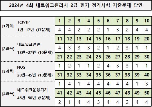 ■ 2024년 4회 네트워크관리사 2급 필기시험 확정답안 (↓)