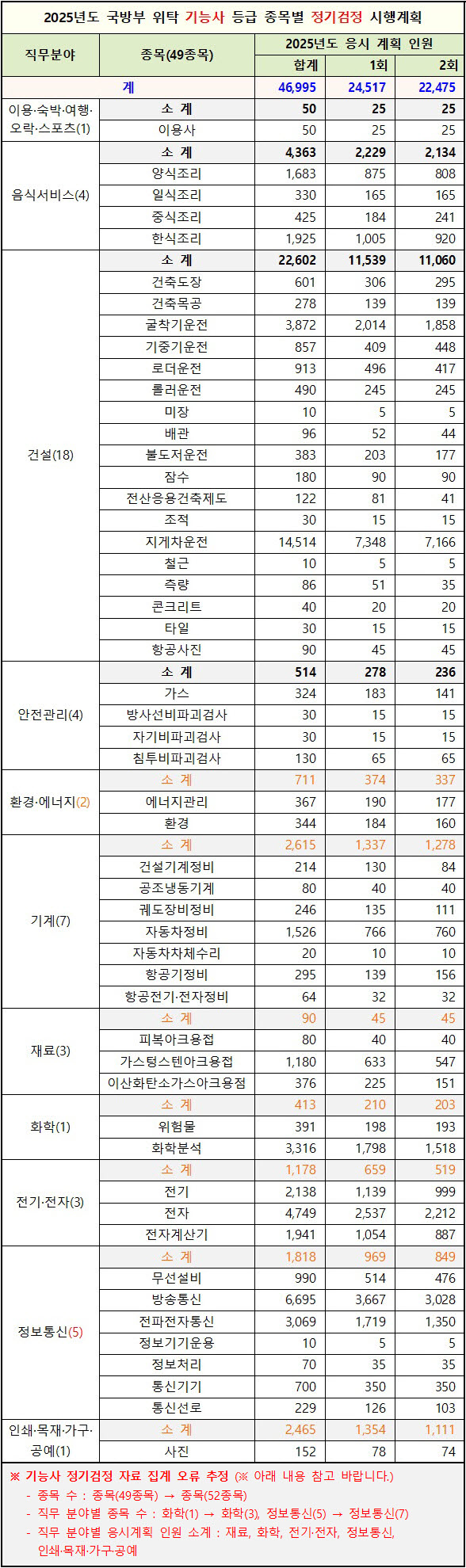 ■ 2025년 국방부 위탁 기능사 등급 국가기술자격 정기검정 종목