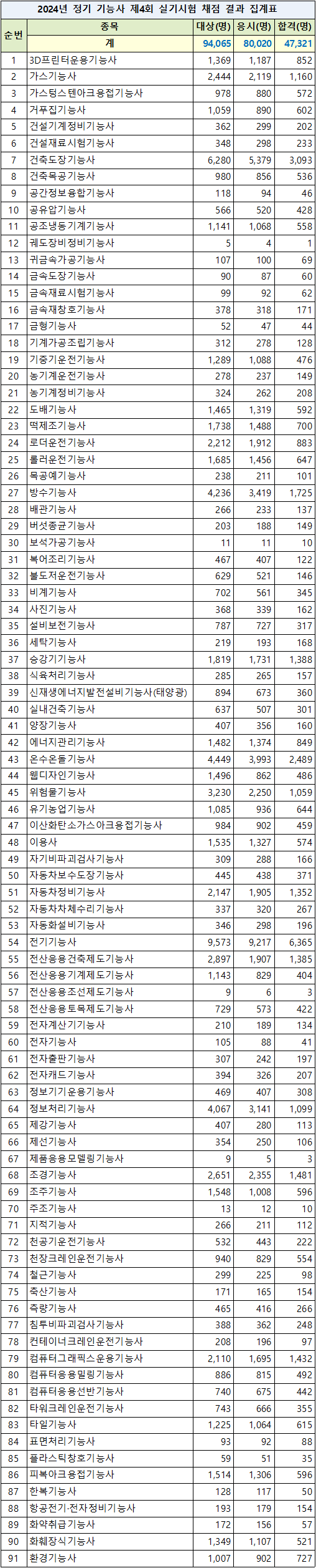 ■ 2024년 4회 기능사 실기시험 종목(91)