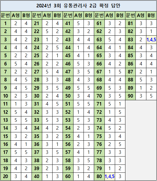 2024년 3회 유통관리사 시험 등급별 기출문제 A형과 B형은 시험장에서 부정행위 등을 방지하기 위해 문제 순서를 다르게 한 것으로 출제 문제는 같습니다.
