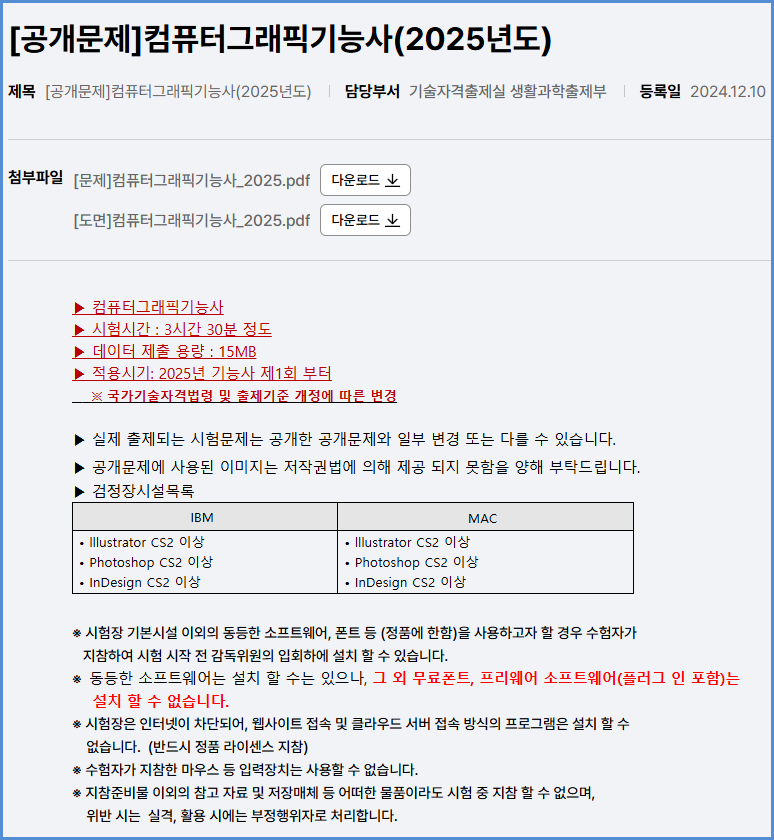 | 2025년부터 적용되는 시각디자인산업기사 실기시험 공개 문제 내려받기 (큐넷 자료실) (0) | 2024.12.24 |