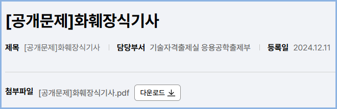 2025년부터 적용되는 화훼장식기사 실기시험 공개 문제 내려받기 (큐넷 자료실)