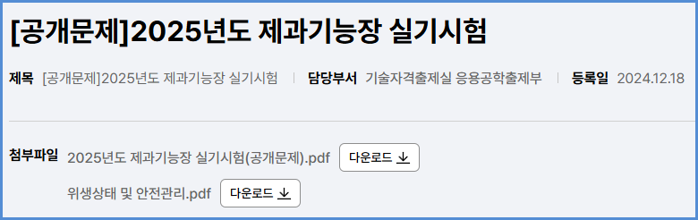 2025년도 적용 제과기능장 실기시험 공개 문제 내려받기 (큐넷 자료실)