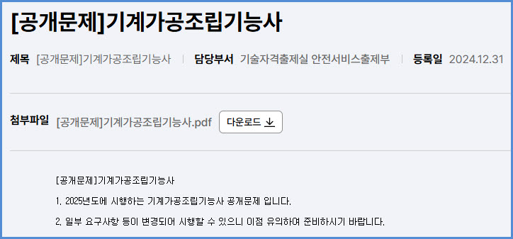 2025년도 적용 기계가공조립기능사 실기시험 공개 문제 내려받기 (큐넷 자료실)