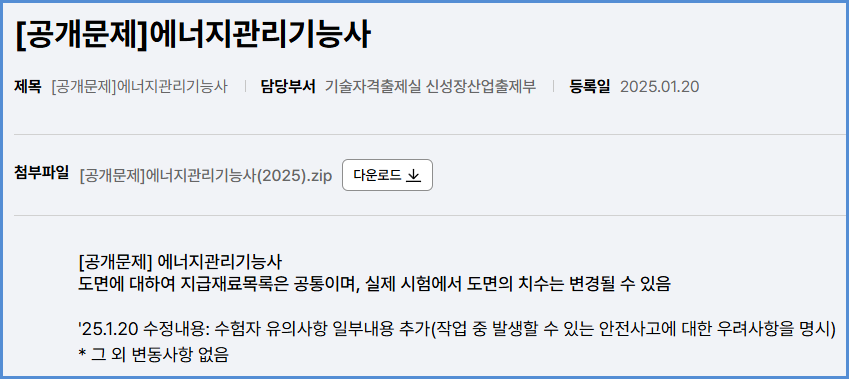 2025년도 적용 에너지관리기능사 실기시험 공개 문제 내려받기 (큐넷 자료실)