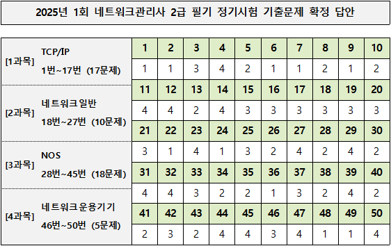 ■ 2025년 1회 네트워크관리사 2급 필기시험 확정답안 (↓)