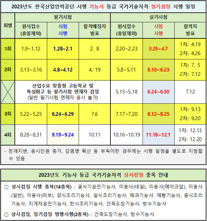 ■ 2023년 한국산업인력공단 시행 기능사 정기검정 일정 (↓)