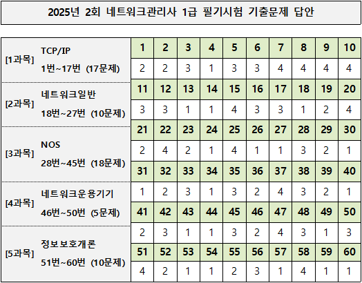 ■ 2025년 2회 네트워크관리사 1급 필기시험 확정답안 (↓)